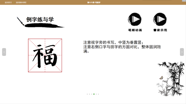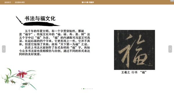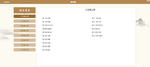 (3)示例:選擇“三年級上冊”的“第十六課:寫福字”,進入該課件頁面;