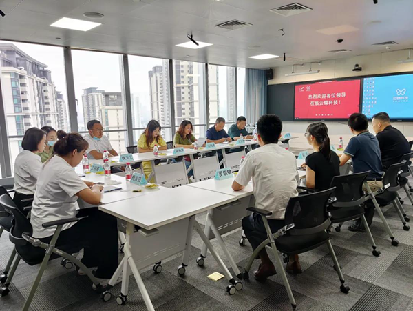 7月21日,甘肅省臨夏州教育局副局長汪梅芳,臨夏州教育局職成科科長陳艷華,臨夏國強(qiáng)職業(yè)技術(shù)學(xué)校干部一行十人到訪云蝶科技總部參觀交流,云蝶科技副總裁陳天博士,副總裁趙清,營銷副總經(jīng)理沈勇等共同出席座談。
