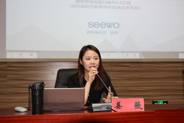 培訓第一項,是針對全體教師開展的班級優(yōu)化大師的高階培訓。本環(huán)節(jié)由希沃講師姜薇負責講解,并且手把手帶著全體教師一起操作,加深培訓效果,深化教學應用。
