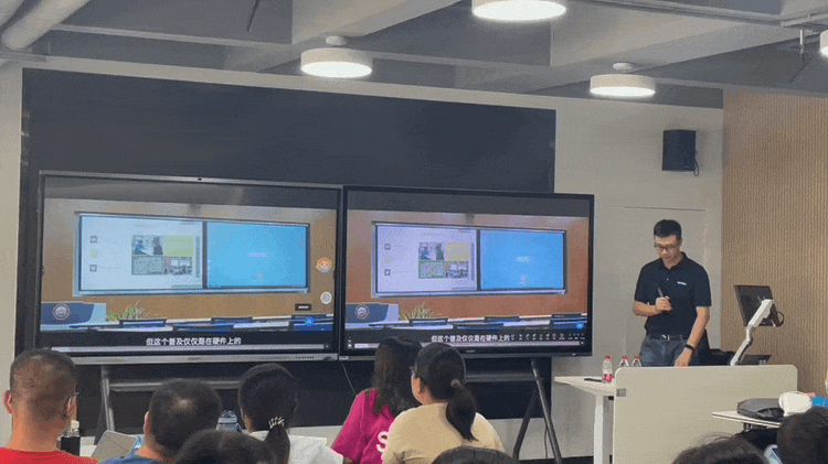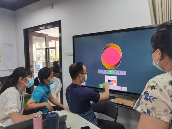 在培訓(xùn)現(xiàn)場,希沃講師們采用小組研討的方式,通過活動式的教室布局與互動式教學(xué),拉近小組與小組之間、參訓(xùn)老師與講師間的距離。在培訓(xùn)過程中,希沃客戶顧問許松柏向大家介紹并操作演示了希沃旗下的智慧教室、小組研討教室、階梯教室、實(shí)驗(yàn)實(shí)訓(xùn)室、共享學(xué)習(xí)空間等多套軟硬件一體化智慧教學(xué)解決方案,引起與會者的廣泛興趣,老師們興致勃勃地進(jìn)行了現(xiàn)場體驗(yàn)與互動。其中涵蓋電容雙拼屏、高教紅外款、超短焦投影等多款硬件設(shè)施。