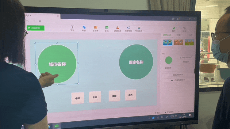 現(xiàn)場教師在體驗(yàn)雙拼拖拽操作