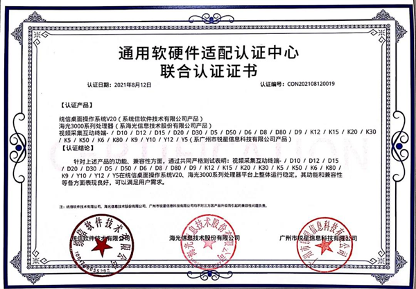 統(tǒng)信認(rèn)證證書(無線視頻展臺、視頻采集終端)