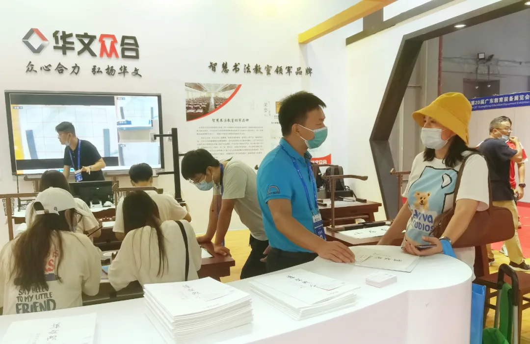 本次廣東展會(huì)華文眾合與智慧同行,將第七代智慧書法教室及智慧粉筆教室?guī)нM(jìn)了觀眾視野,再次引來了青睞和關(guān)注,而在華文眾合展館火爆的人氣背后,不僅彰顯了華文眾合產(chǎn)品的實(shí)力,也見證了“以匠心,承初心”的書法教育堅(jiān)守與情懷。堅(jiān)持“傳統(tǒng)與科技相結(jié)合、而不摒棄傳統(tǒng)”,堅(jiān)持“讓書法名家走進(jìn)課堂”,堅(jiān)持“雙先進(jìn),既注重技術(shù)的先進(jìn)性又注重教學(xué)的先進(jìn)性”,華文眾合始終堅(jiān)持打造匠心產(chǎn)品,提供優(yōu)質(zhì)服務(wù)。