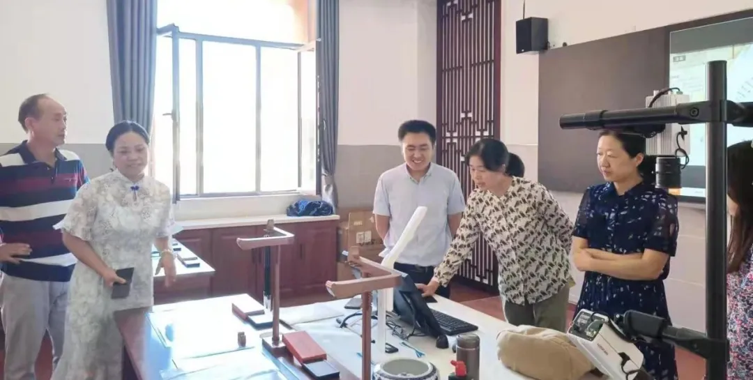 湖北省當(dāng)陽(yáng)市委書(shū)記、教育局局長(zhǎng)走訪(fǎng)玉陽(yáng)中學(xué)熊家山校區(qū),參觀體驗(yàn)華文眾合智慧書(shū)法教室