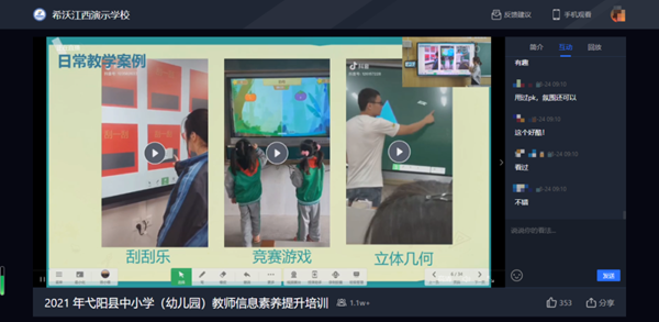為了進(jìn)一步提升教師現(xiàn)代教育技術(shù)應(yīng)用能力,激發(fā)教師的創(chuàng)新意識(shí),探討交互式多媒體環(huán)境下教與學(xué)的模式與方法,8月24-9月7日弋陽縣教體局?jǐn)y手希沃團(tuán)隊(duì)展開了15天的線上交流培訓(xùn)活動(dòng)。此次活動(dòng)覆蓋了全縣65所學(xué)校,共計(jì)3297名教師踴躍參加。
