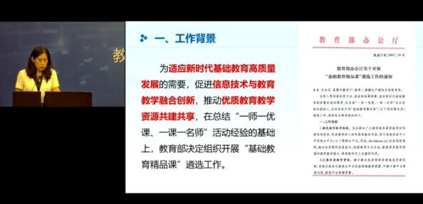 會(huì)上,教育部基礎(chǔ)教育司司長呂玉剛指出,“基礎(chǔ)教育精品課”遴選工作是推進(jìn)基礎(chǔ)教育高質(zhì)量發(fā)展的重要舉措,是落實(shí)“雙減”任務(wù)的重要行動(dòng),也是新時(shí)期進(jìn)一步推進(jìn)信息技術(shù)和教育教學(xué)融合的重要手段。