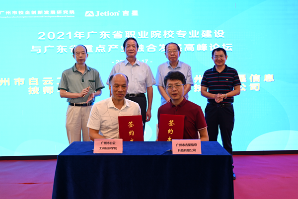 在論壇現(xiàn)場,吉星分別與廣州市白云工商技師學院、廣州華南商貿(mào)職業(yè)學院簽訂校企合作協(xié)議,進一步推動校企合作。