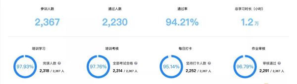 本次線(xiàn)上培訓(xùn)自8月23日開(kāi)展以來(lái),包含7天的線(xiàn)上研修學(xué)習(xí),8天的交互式課件大作業(yè),參訓(xùn)學(xué)校涵蓋37所,參訓(xùn)老師達(dá)2367人,其中2230位老師通過(guò)該培訓(xùn),綜合結(jié)業(yè)率達(dá)到94.21%。此次線(xiàn)上培訓(xùn)讓教師們了解并掌握課件制作的能力,利用信息化工具制作生成互動(dòng)式課件進(jìn)行互動(dòng)性教學(xué)。且達(dá)到了培訓(xùn)過(guò)程可視化、結(jié)果可量化的預(yù)定目標(biāo)。