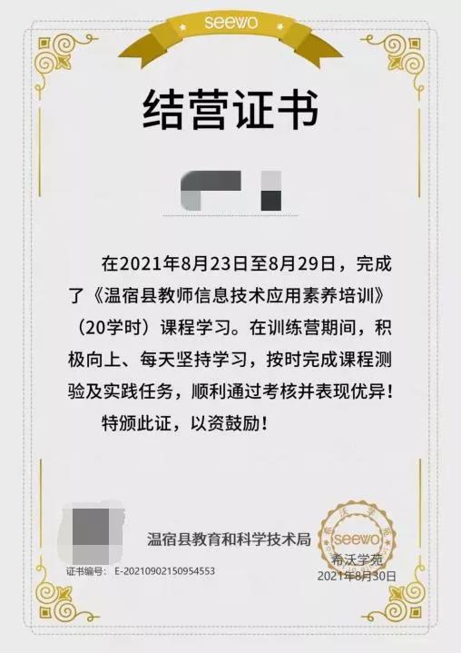 在此次培訓(xùn)過(guò)程中,同時(shí)也涌現(xiàn)出7位負(fù)責(zé)認(rèn)真的校級(jí)管理員,除此之外,整個(gè)培訓(xùn)過(guò)程的順利開(kāi)展也與教育局給予的支持密不可分。因?yàn)榇舜尉(xiàn)上學(xué)習(xí)的平臺(tái)考核標(biāo)準(zhǔn)較為嚴(yán)格,審核及證書(shū)的發(fā)放皆由后臺(tái)自動(dòng)化生成,使得一部分老師因漏打卡或大作業(yè)未通過(guò)而與結(jié)業(yè)證書(shū)失之交臂,但正是嚴(yán)苛的培訓(xùn)考核要求,使得此次教師的培訓(xùn)不流于形式,真正學(xué)而有所得。