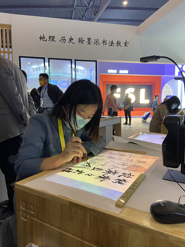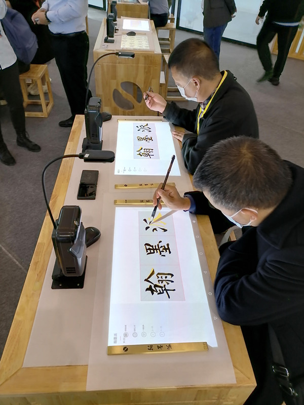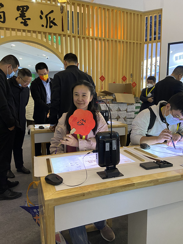 此次展會(huì)推出創(chuàng)意禮品,各位參觀(guān)者可以到翰墨派云書(shū)法教室任意體驗(yàn)臨摹,之后將臨摹佳作帶走。創(chuàng)意禮品有各色團(tuán)扇、福字卡、翰墨宣紙等。展會(huì)第一天參與者眾多,每位路過(guò)的賓客都不忍錯(cuò)過(guò)妙筆生花的機(jī)會(huì)。