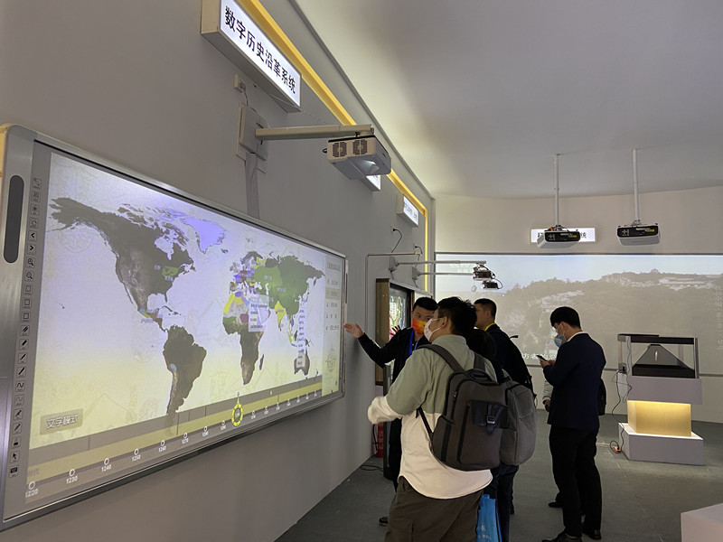 史地教室是羿飛教育的王牌項(xiàng)目,一直以來(lái)都備受行業(yè)關(guān)注。此次現(xiàn)場(chǎng)展出數(shù)字歷史沿革系統(tǒng)、互動(dòng)演示實(shí)驗(yàn)、AR地理沙盤(pán)、數(shù)字立體地形、數(shù)字模型、交互式3D多媒體教學(xué)系統(tǒng)等。