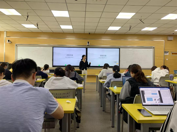 說課環(huán)節(jié)展示結(jié)束后,在場學生進行了互評和打分。在說課比賽結(jié)果出來之前,希沃教師發(fā)展中心羅青老師做了此次教學應用展示活動的課件點評和總結(jié)。