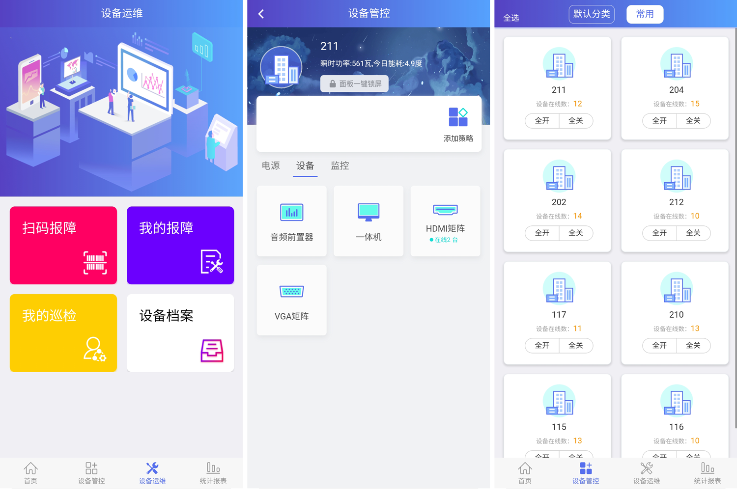 以幫助老師減負(fù)為目的,教室智能管控系統(tǒng)的好處在于,不需要每個(gè)老師掌握教室內(nèi)投影儀、幕布、功放、音箱等各類設(shè)備的操作,系統(tǒng)預(yù)設(shè)了上課下課等場(chǎng)景,只需值班人員通過云端進(jìn)行遠(yuǎn)程控制,即可完成課前準(zhǔn)備與課后整理。并且即便值班人員零技術(shù)基礎(chǔ),只要會(huì)用手機(jī),操作就沒有難度。