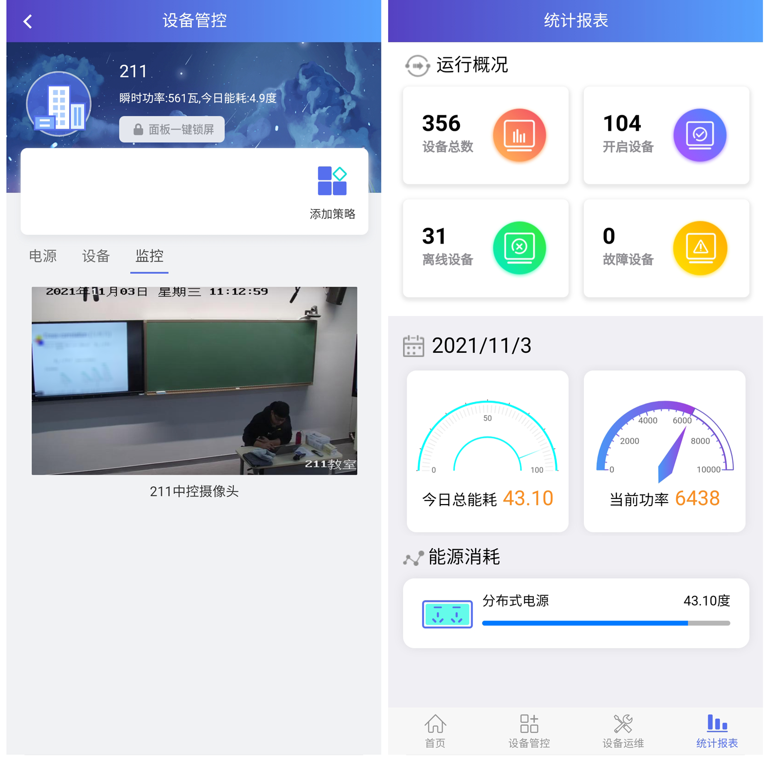 物聯(lián)集中管控,將可視化的數(shù)據(jù)展示,與可視化的教室場(chǎng)景視頻結(jié)合,如果出現(xiàn)數(shù)據(jù)異常,那么通過教室攝像頭可以立即直觀地看到問題,并快速解決問題,便捷高效地支撐教學(xué)與教務(wù)管理等各類需求。