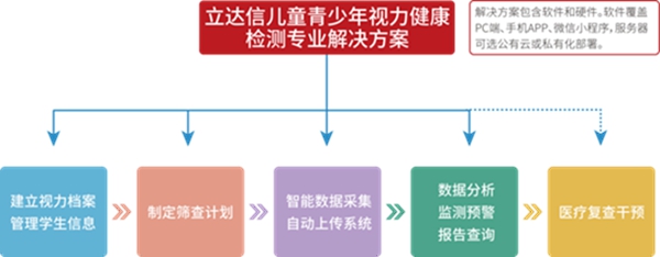 作為國內(nèi)最早關(guān)注學(xué)生近視問題,并率先提供專業(yè)護(hù)眼產(chǎn)品及健康光環(huán)境解決方案的先行者,立達(dá)信重磅推出兒童青少年視力健康監(jiān)測專業(yè)解決方案——專為3-18歲兒童青少年視力篩查防控而設(shè)計,集篩查、監(jiān)測、預(yù)警為一體,可快速創(chuàng)建視力健康檔案,為各級教育局、學(xué)校提供權(quán)威、準(zhǔn)確的數(shù)據(jù),助力近視防控工作聯(lián)動協(xié)同,為學(xué)生視力健康保駕護(hù)航。