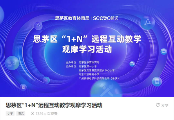 本次觀摩學(xué)習(xí)活動(dòng)主要以“希沃公益行-千里共課堂計(jì)劃”為背景,設(shè)置了建設(shè)規(guī)劃、互動(dòng)教學(xué)觀摩、總結(jié)展望等活動(dòng)版塊,依托希沃“1+N互動(dòng)課堂”信息教育技術(shù)系統(tǒng),讓來(lái)自思茅區(qū)第一小學(xué)的師生與龍?zhí)缎W(xué)的師生能通過(guò)網(wǎng)絡(luò)“共聚一堂”完成三堂遠(yuǎn)程同步觀摩課。同時(shí),此次活動(dòng)還邀請(qǐng)到了南京市瑯琊路小學(xué)一同交流學(xué)習(xí),真正推進(jìn)教育幫扶的進(jìn)度。為確!1+N互動(dòng)課堂”推進(jìn)的統(tǒng)籌性、高效性,在前期已對(duì)學(xué)校教研教務(wù)、電教老師等進(jìn)行了統(tǒng)一性、系統(tǒng)性部署與業(yè)務(wù)培訓(xùn)。