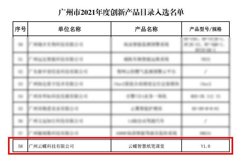 云蝶智慧紙筆課堂入選廣州市2021年度創(chuàng)新產(chǎn)品目錄