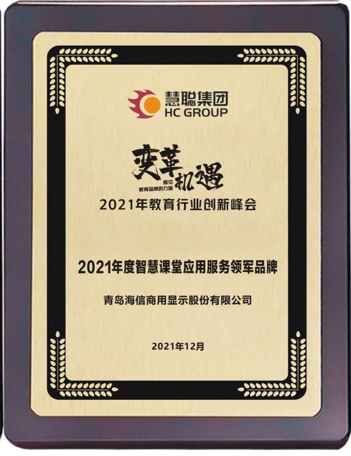 海信“三個(gè)課堂+”系統(tǒng)解決方案榮獲2021年度智慧課堂應(yīng)用服務(wù)領(lǐng)軍品牌獎(jiǎng)