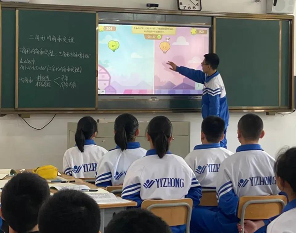 在課程中,來自遼陽市第十一中學(xué)的周英男老師展現(xiàn)了一場生動(dòng)的數(shù)學(xué)課《三角形內(nèi)角和定理》,周老師通過希沃錄播設(shè)備、希沃白板豐富的學(xué)科工具以及課堂互動(dòng)工具讓遼陽一中學(xué)生與額敏縣六中學(xué)生同頻答題、同頻游戲,活躍的課堂氛圍讓相距千里的學(xué)生們,如同置身同一堂課,生動(dòng)的互動(dòng)教學(xué)也讓學(xué)生們對(duì)本節(jié)課內(nèi)容理解的更加深刻。