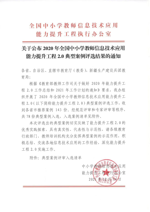 2020年全國(guó)中小學(xué)教師信息技術(shù)應(yīng)用能力提升工程2.0典型案例評(píng)選工作,于2021年12月圓滿落下帷幕。這是由全國(guó)中小學(xué)教師信息技術(shù)應(yīng)用能力提升工程執(zhí)行辦公室主辦的一場(chǎng)全國(guó)性評(píng)選,經(jīng)過(guò)層層選拔,78份典型案例得以最終入選。福建省浦城縣第三中學(xué),憑借團(tuán)隊(duì)力量,依托希沃軟硬件支撐,在143份報(bào)送案例中脫穎而出,成為全國(guó)各省市教育教學(xué)相關(guān)人員學(xué)習(xí)的優(yōu)質(zhì)范本。