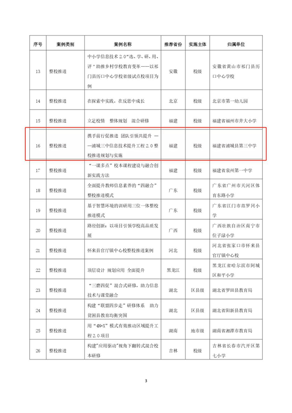 一所山區(qū)學(xué)校入選全國(guó)典型優(yōu)秀案例校,浦城三中穩(wěn)步推進(jìn)。浦城三中以整校推進(jìn)為發(fā)力點(diǎn),以“領(lǐng)導(dǎo)重視、團(tuán)隊(duì)引領(lǐng)、立足極簡(jiǎn)、創(chuàng)新融合”為主旨思想,從“以點(diǎn)帶面,先行先試”、“依托校本,以研促用”、“ 團(tuán)隊(duì)合作,共研共創(chuàng)”、“ 輻射引領(lǐng),攜手共進(jìn)”、“ 整校推進(jìn),融合創(chuàng)新”五個(gè)方面著手,在校本研修、創(chuàng)新融合、團(tuán)隊(duì)成長(zhǎng)等方面取得了實(shí)效。