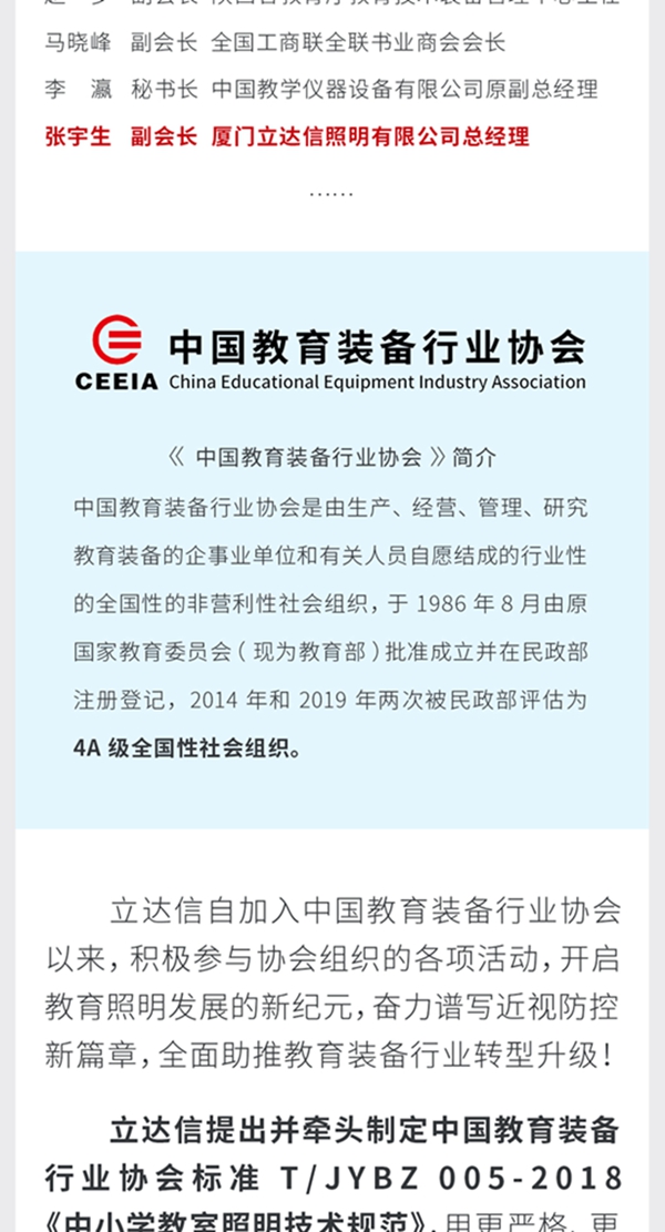 重磅喜訊 | 立達信當選中國教育裝備行業(yè)協(xié)會第七屆理事會副會長單位