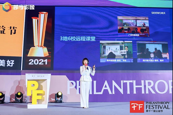 希沃教育研究院院長胡婷玉出席了公益節(jié),并以“遠程課堂,為鄉(xiāng)村教育創(chuàng)造更多可能”為主題發(fā)表了演講。她提到,希沃公益行走過6個年頭,一直在不斷改變和升級,一步步從改善鄉(xiāng)村教育環(huán)境走向硬件提升和軟性建設一齊發(fā)力,到2021成長為捐贈設備、教師培訓、組團幫扶遠程課堂建設三線并行……希沃,一直在為教育均衡而努力著。