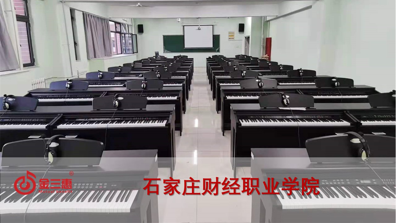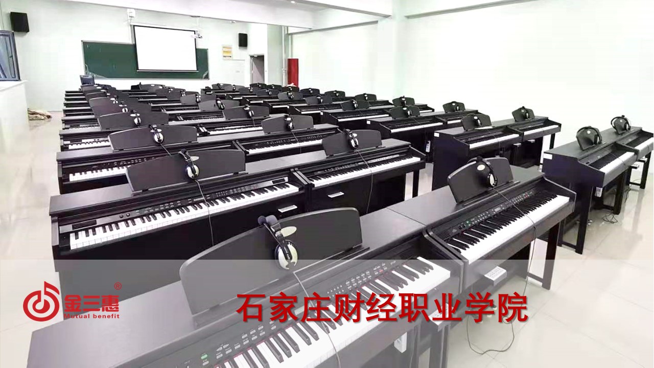 石家莊財(cái)經(jīng)職業(yè)學(xué)院的數(shù)字音樂(lè)電鋼琴教室正式開(kāi)始使用,本校電鋼琴教室由北京金三惠科技有限公司負(fù)責(zé)提供、安裝、培訓(xùn)。
