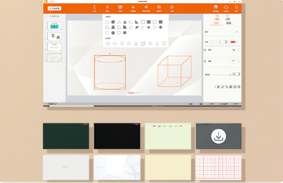 歐帝白板7支持插入二維、三維圖形及多種類型的圖表插入,可以對(duì)圖形樣式、顏色填充、邊框類型、陰影、倒影、透明度等進(jìn)行設(shè)置,可對(duì)圖形進(jìn)行任意伸縮;支持圖形排版,設(shè)置層級(jí)、旋轉(zhuǎn)和對(duì)齊方式的設(shè)置;支持文本動(dòng)畫,提供出現(xiàn)、動(dòng)作和消失等動(dòng)畫模式,并可對(duì)動(dòng)畫開始的時(shí)間、順序進(jìn)行設(shè)計(jì)。