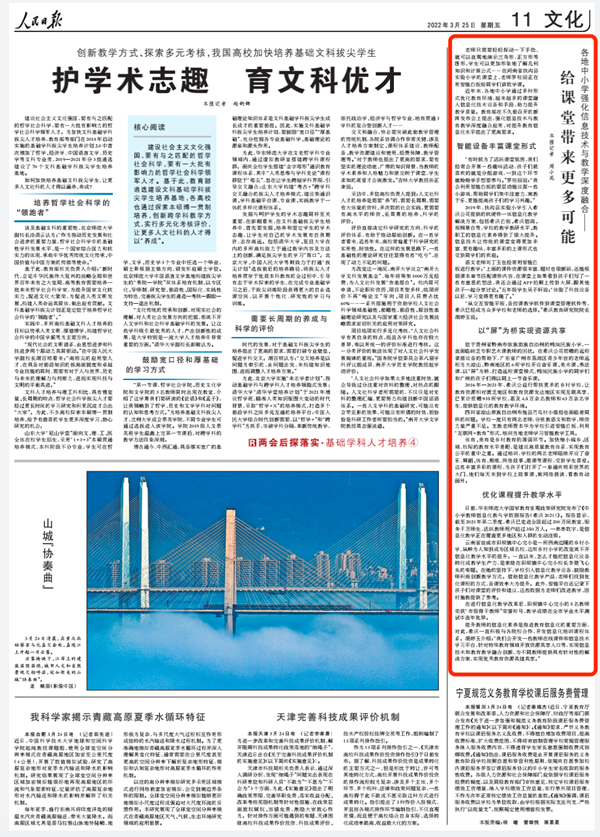 3月25日,人民日報A11文化版發(fā)表《各地中小學(xué)強化信息技術(shù)與教學(xué)深度融合——給課堂帶來更多可能》文章報道希沃,以下為原文: