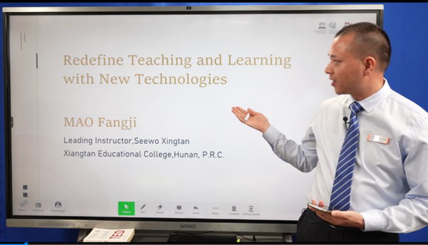 ▲希沃杏壇導師毛方吉為亞非地區(qū)教師分享信息化教學方法