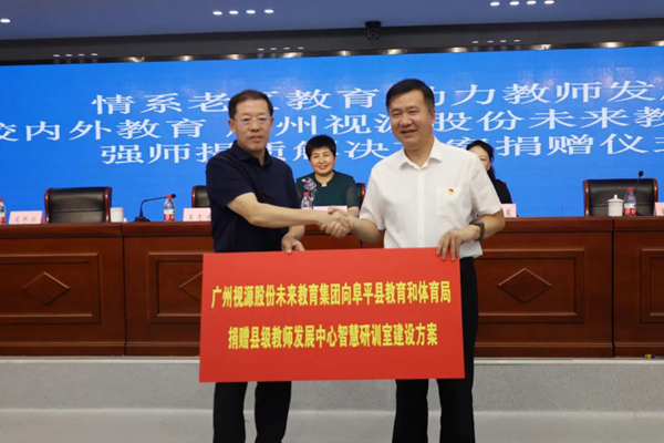 隨后,廣州視源股份未來教育集團(tuán)(希沃)副總裁魏振水向河北阜平縣捐贈(zèng)價(jià)值500000元的縣級(jí)教師發(fā)展中心智慧研訓(xùn)室,通過硬件、軟件與教師培訓(xùn)服務(wù)助力阜平教師專業(yè)發(fā)展。