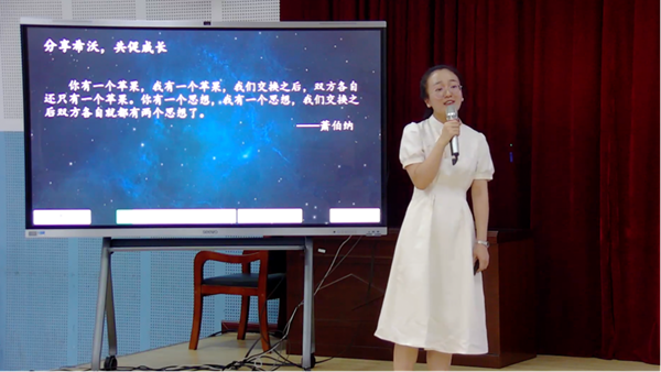 緊接著,來自運城鹽湖區(qū)錢學(xué)森科技實驗小學(xué)的希沃杏壇導(dǎo)師石榛帶來了《信息化環(huán)境下的課堂教學(xué)》課題分享。石老師從教學(xué)硬件設(shè)備的變革引出信息化教學(xué)的話題,通過希沃白板中的一系列課堂活動以及工具,結(jié)合實際教學(xué)案例描述信息技術(shù)在教育教學(xué)中的應(yīng)用場景,深入淺出的說明信息技術(shù)手段對于教師課程的幫助以及學(xué)生的幫助。