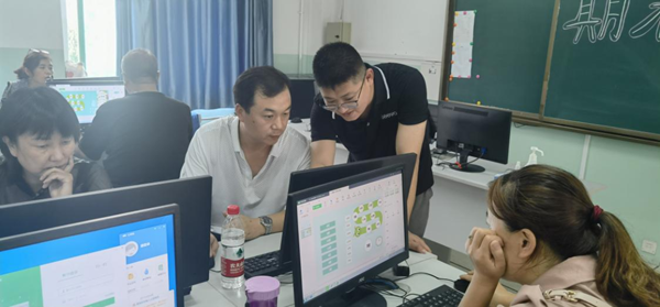通過實操環(huán)節(jié),老師們根據(jù)所學(xué)的內(nèi)容在電腦上進行實操演練,通過小組研討制作學(xué)科融合課件,將同一主題融入到每一位老師的任教科目中,制作過程中,老師們不斷研討、修改、力求技術(shù)與學(xué)科的完美融合,針對不理解的內(nèi)容,希沃講師也及時為老師們進行指導(dǎo)。