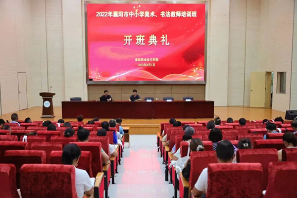 8月1日,襄陽市中小學書法、美術骨干教師研修培訓班開班典禮在襄陽市職業(yè)技術學院師范學院學校圖書館學術報告廳隆重舉行。襄陽市書法家協(xié)會主席劉水露、師范學院院長劉紅新等參加開班儀式。來自各縣市區(qū)的200多名中小學書法、美術教師開始了為期7天的研修培訓之旅。