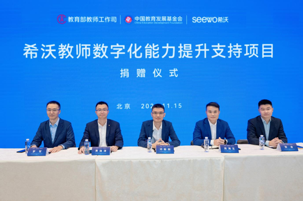 數(shù)字引領(lǐng)未來(lái),強(qiáng)師成就教育。11月15日,希沃教師數(shù)字化能力提升支持項(xiàng)目捐贈(zèng)儀式在京舉行。教育部黨組成員、副部長(zhǎng)鄭富芝、教育部教師工作司司長(zhǎng)任友群、中國(guó)教育發(fā)展基金會(huì)秘書(shū)長(zhǎng)王建光、廣州視睿電子科技有限公司(希沃)董事長(zhǎng)鄧毅剛等出席儀式。