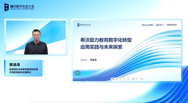 11月30日,2022年騰訊全球數(shù)字生態(tài)大會舉辦。會上,借助視源股份未來教育集團副總裁、開得聯(lián)智能科技董事長黃逸濤關于《希沃助力教育數(shù)字化轉型應用實踐與未來探索》主題演講,希沃展現(xiàn)出過去十年來其在教育數(shù)字化領域的亮眼“成績單”,以及希沃正在探索的未來校園藍圖。