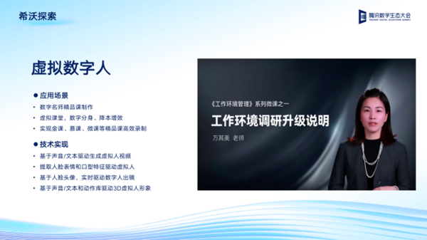 面向未來,我們正在探索虛擬數(shù)字人在精品課建設中的應用和數(shù)字孿生技術在校園業(yè)務場景的應用,實現(xiàn)教室和校園的虛擬化、數(shù)字化,為未來教育提供更多可能。