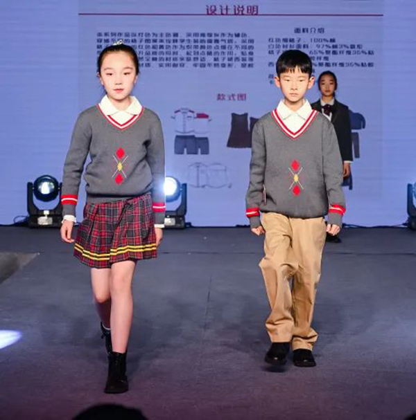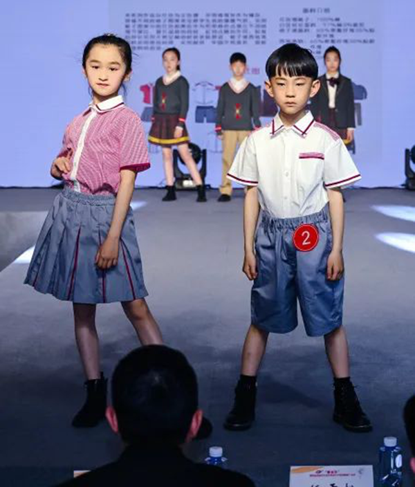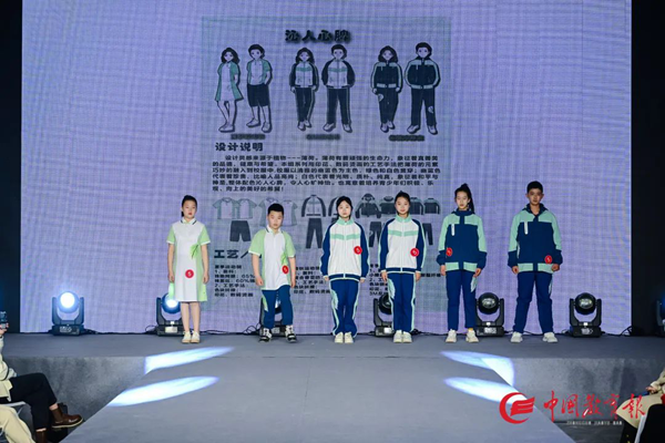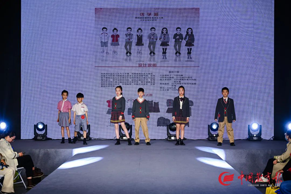 本屆設(shè)計(jì)大賽以“衣以載道、以美育人”為主題,現(xiàn)場(chǎng)展示了包含中小學(xué)運(yùn)動(dòng)裝、中小學(xué)制服裝、教師職業(yè)裝五個(gè)類別共計(jì)300個(gè)系列作品。