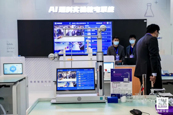 展位現(xiàn)場(chǎng),“AI理科教室解決方案”展示區(qū)內(nèi),工作人員帶領(lǐng)嘉賓真實(shí)地模擬了理科實(shí)驗(yàn)課堂的應(yīng)用場(chǎng)景。讓嘉賓身臨其境地感受到了錫鼎智能教育新品及AI理科實(shí)驗(yàn)教考平臺(tái)的數(shù)字化、信息化、智能化。