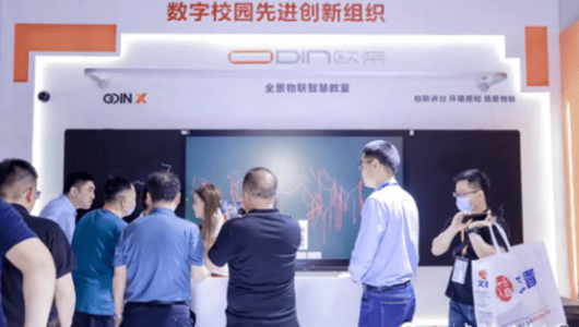 除了第六代智慧黑板Odin X,基于對基礎(chǔ)教育數(shù)字化校園場景的深刻理解和實(shí)踐,此次展會,歐帝帶來了多種創(chuàng)新教學(xué)場景,例如以數(shù)字治理為核心的未來校園數(shù)字總部,以物聯(lián)網(wǎng)技術(shù)為核心的全景物聯(lián)智慧教室、以互動創(chuàng)新教學(xué)為核心的多屏研討型智慧教室。
