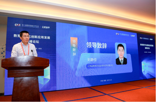劉靜儉在致辭中簡要介紹了江西推動教育數(shù)字化轉(zhuǎn)型的實(shí)踐,并表示今后也將繼續(xù)推進(jìn)素質(zhì)教育的技術(shù)模式、業(yè)態(tài)制度創(chuàng)新,以教育數(shù)字化支撐,引領(lǐng)教育現(xiàn)代化,為建設(shè)教育強(qiáng)國開辟全新賽道,增添強(qiáng)大動能。