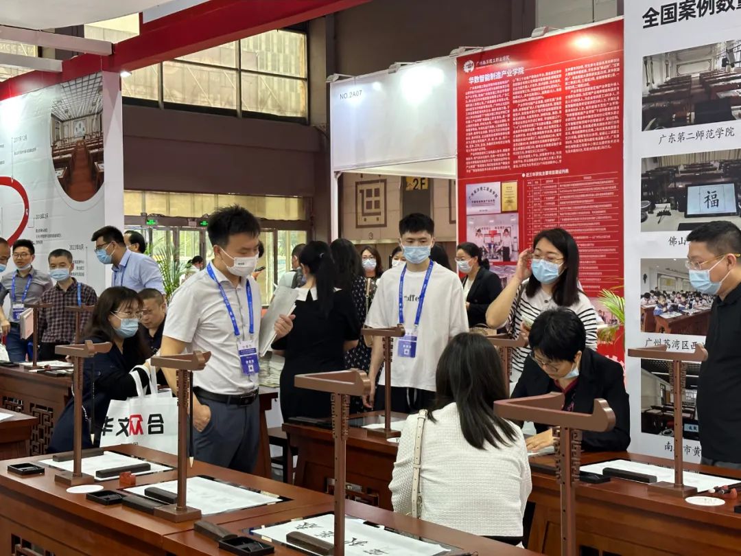 2023年3月24日,第21屆廣東教育裝備展覽會暨第3屆廣東民辦教育博覽會在廣州國際采購中心正式拉開帷幕,展會將持續(xù)三天,于3月26日結(jié)束。羊城三月,春暖花開,眾多企業(yè)如期赴約,華文眾合攜最新研發(fā)產(chǎn)品第8代智慧書法教室精彩亮相。