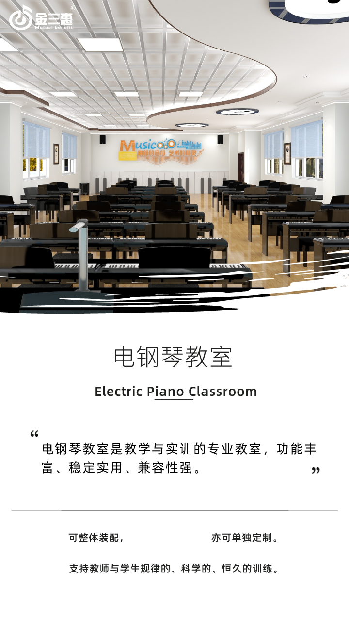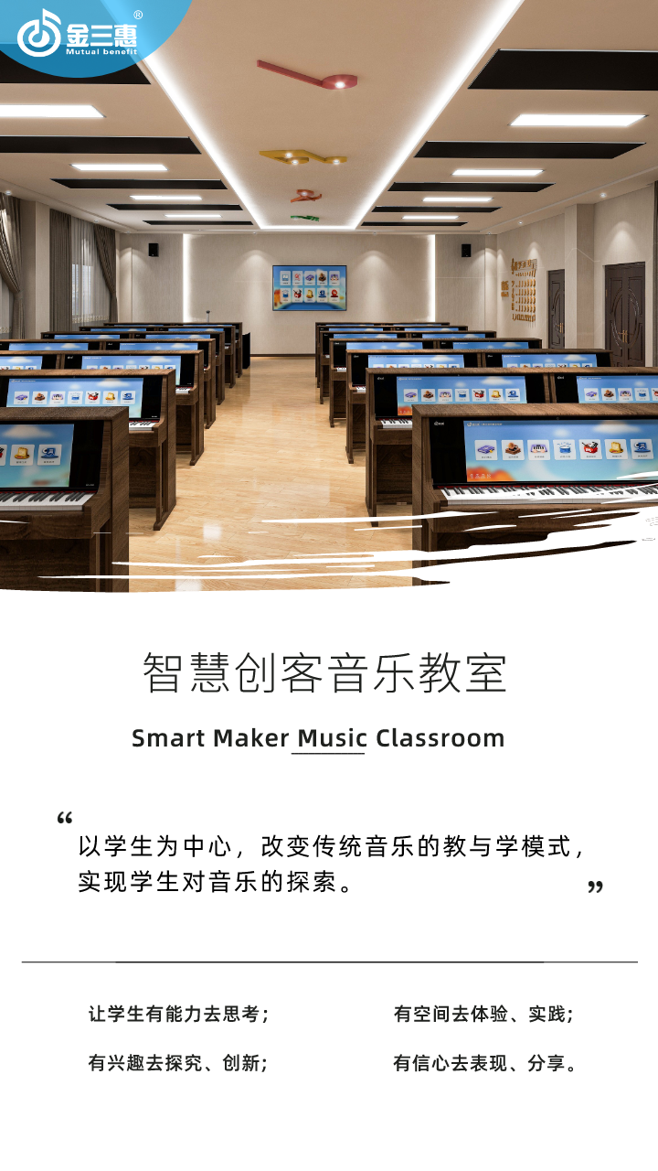 金三惠專業(yè)從事數(shù)字化音樂教育發(fā)展的“國家高新技術(shù)企業(yè)”,致力于為各類學(xué)校提供優(yōu)質(zhì)且豐富的一站教室解決方案,集校園教學(xué)平臺開發(fā)、教學(xué)與教師培訓(xùn)、課程開發(fā)、教學(xué)設(shè)備研發(fā)生產(chǎn)為核心,推動國家藝術(shù)教育均衡化、推進(jìn)教育新基建,實現(xiàn)數(shù)字智能化教學(xué)做出了巨大的助力。