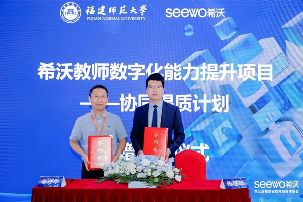 為積極響應(yīng)政策,持續(xù)推進(jìn)項(xiàng)目落地,希沃在展會(huì)現(xiàn)場(chǎng)舉行了希沃教師數(shù)字化能力提升項(xiàng)目-協(xié)同提質(zhì)計(jì)劃捐贈(zèng)儀式。未來(lái),希沃將向福建師范大學(xué)、閩南師范大學(xué)捐贈(zèng)一批教育數(shù)字化設(shè)備和軟件,并支持建設(shè)智慧教室、智慧研訓(xùn)室。