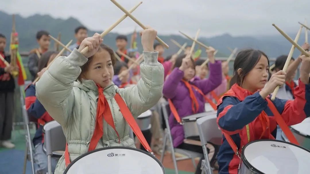 △圖為“金三惠”為貴州省方良小學(xué)建成的鼓號(hào)隊(duì)捐贈(zèng)器材