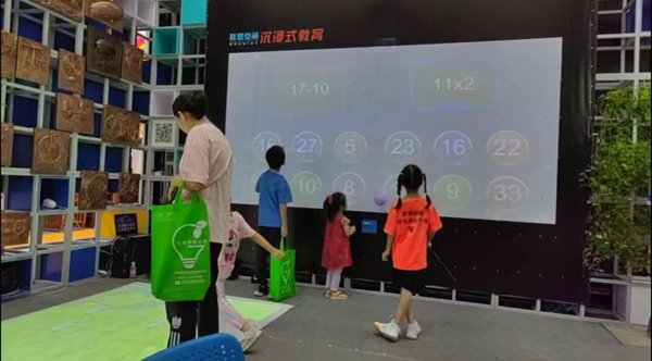 《互動(dòng)投影學(xué)習(xí)系統(tǒng)》除了“A夢(mèng)計(jì)劃”,博覽會(huì)上還展示了其他與學(xué)習(xí)相關(guān)的產(chǎn)品和技術(shù),如互動(dòng)投影學(xué)習(xí)系統(tǒng)。這種系統(tǒng)通過游戲化學(xué)習(xí)的方式,讓學(xué)生通過玩游戲來學(xué)習(xí)知識(shí),從而提升學(xué)習(xí)的趣味性和效率。其中,數(shù)學(xué)籃球和單詞追追樂是兩個(gè)特別引人注目的項(xiàng)目。這些項(xiàng)目不僅幫助學(xué)生提高學(xué)習(xí)和記憶能力,還通過游戲增強(qiáng)了學(xué)生的身體協(xié)調(diào)性和力量。數(shù)學(xué)籃球:1、通過漢字發(fā)音幫助學(xué)生更好地學(xué)習(xí)和記憶學(xué)過的漢字;2、提升學(xué)生學(xué)習(xí)的興趣和主動(dòng)性;3、通過投球擊打,提升學(xué)生的身體協(xié)調(diào)性和力量。