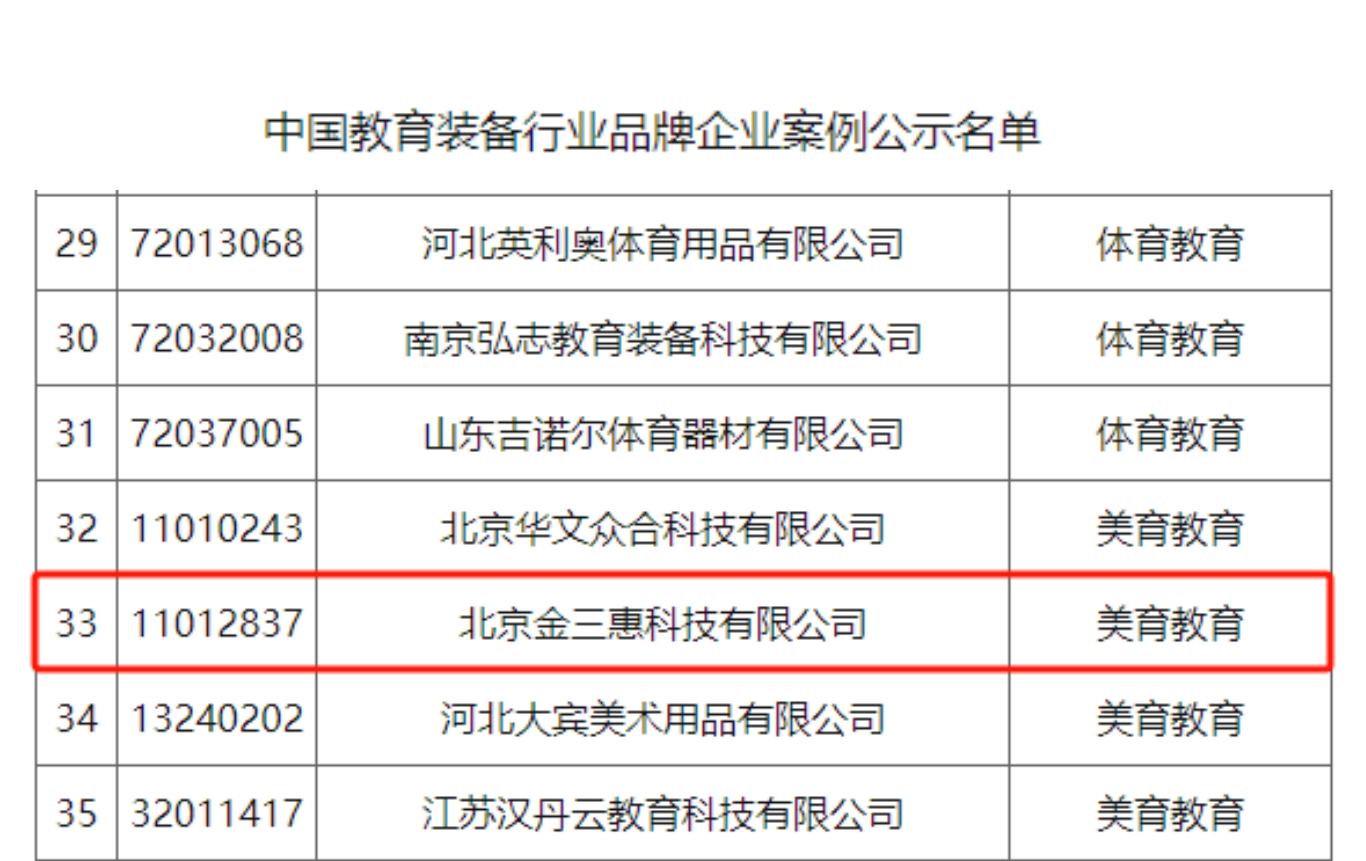 10月7日,中國教育裝備行業(yè)協(xié)會公示“中國教育裝備行業(yè)品牌企業(yè)案例公示名單”,北京金三惠成功入圍該名單。
