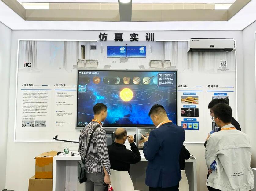 仿真實訓作為本次展會的“明星產品”,備受客戶朋友的廣泛關注。通過集合虛擬現(xiàn)實和增強現(xiàn)實技術,集成傳感器、計算機處理單元、顯示屏和交互控制器等,搭配專業(yè)的3D視頻資源,提供沉浸式的虛擬現(xiàn)實和超現(xiàn)實體驗,有助于增進課堂互動,提升教學效果。