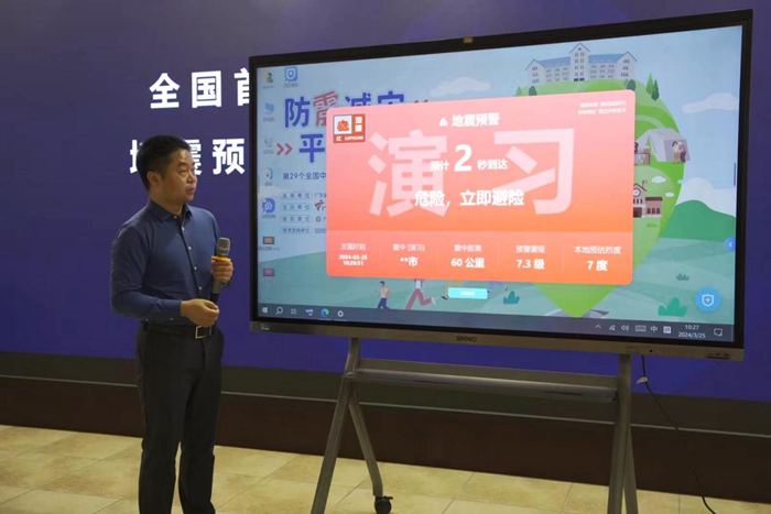 3月25日,正值第29個全國中小學(xué)生安全教育日之際,在廣東省地震局、廣東省教育廳指導(dǎo)下,由廣東廣播電視臺新聞頻道主辦的“防震減災(zāi),平安校園”活動在廣州培正中學(xué)舉行。在廣東省地震局指導(dǎo)下,希沃完成全國首個基于教室交互智能平板的地震預(yù)警系統(tǒng)開發(fā),并在此次活動中進行首次演示。